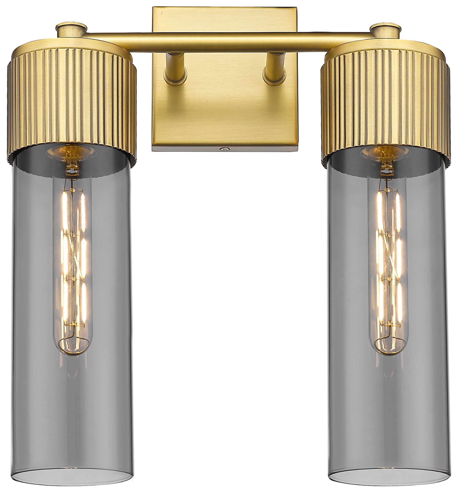 Bolivar 16" High 2 Light Brushed Brass Sconce With Plated Smoke Glass