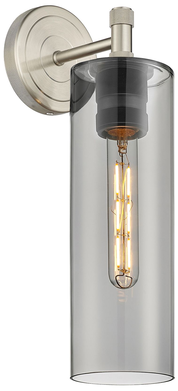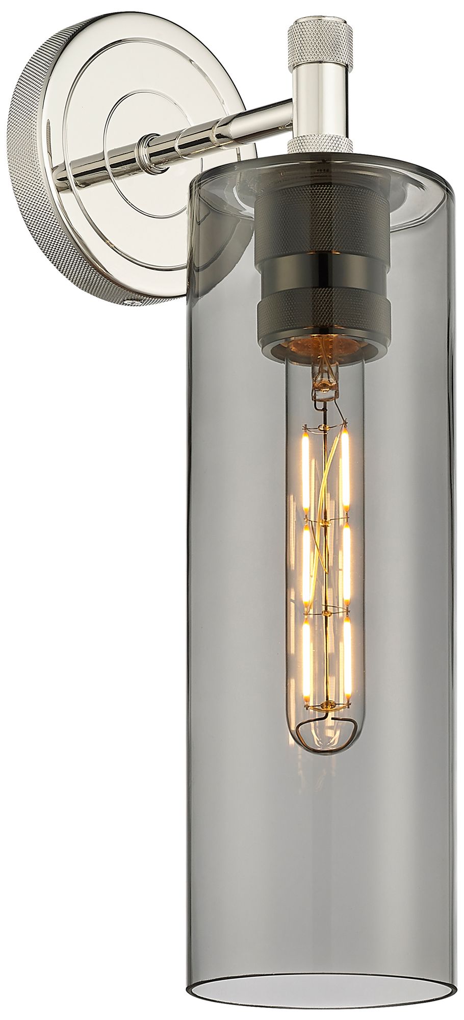 Crown Point 15.5" High Polished Nickel Sconce With Plated Smoke Glass