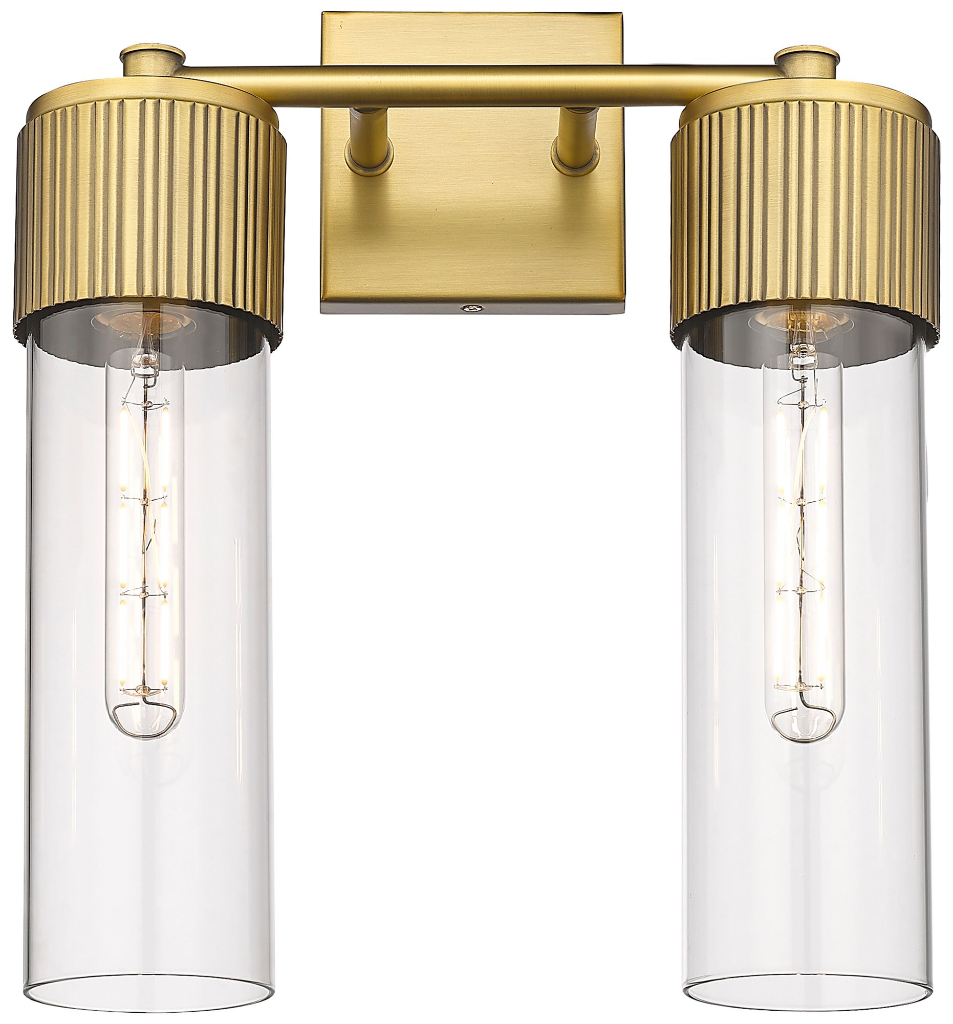 Bolivar 16" High 2 Light Brushed Brass Sconce With Seedy Glass Shade
