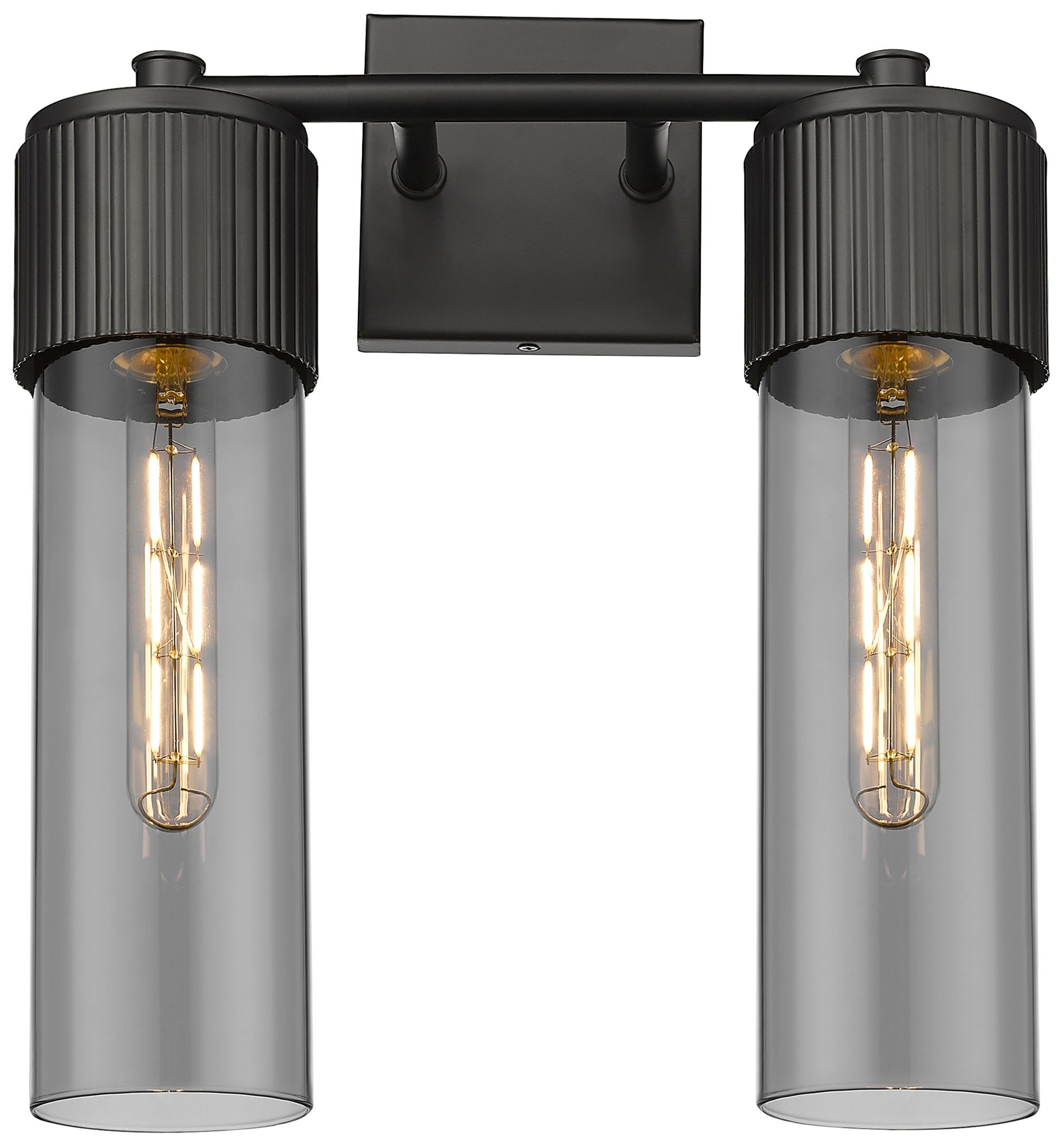 Bolivar 16" High 2 Light Matte Black Sconce With Plated Smoke Glass Sh