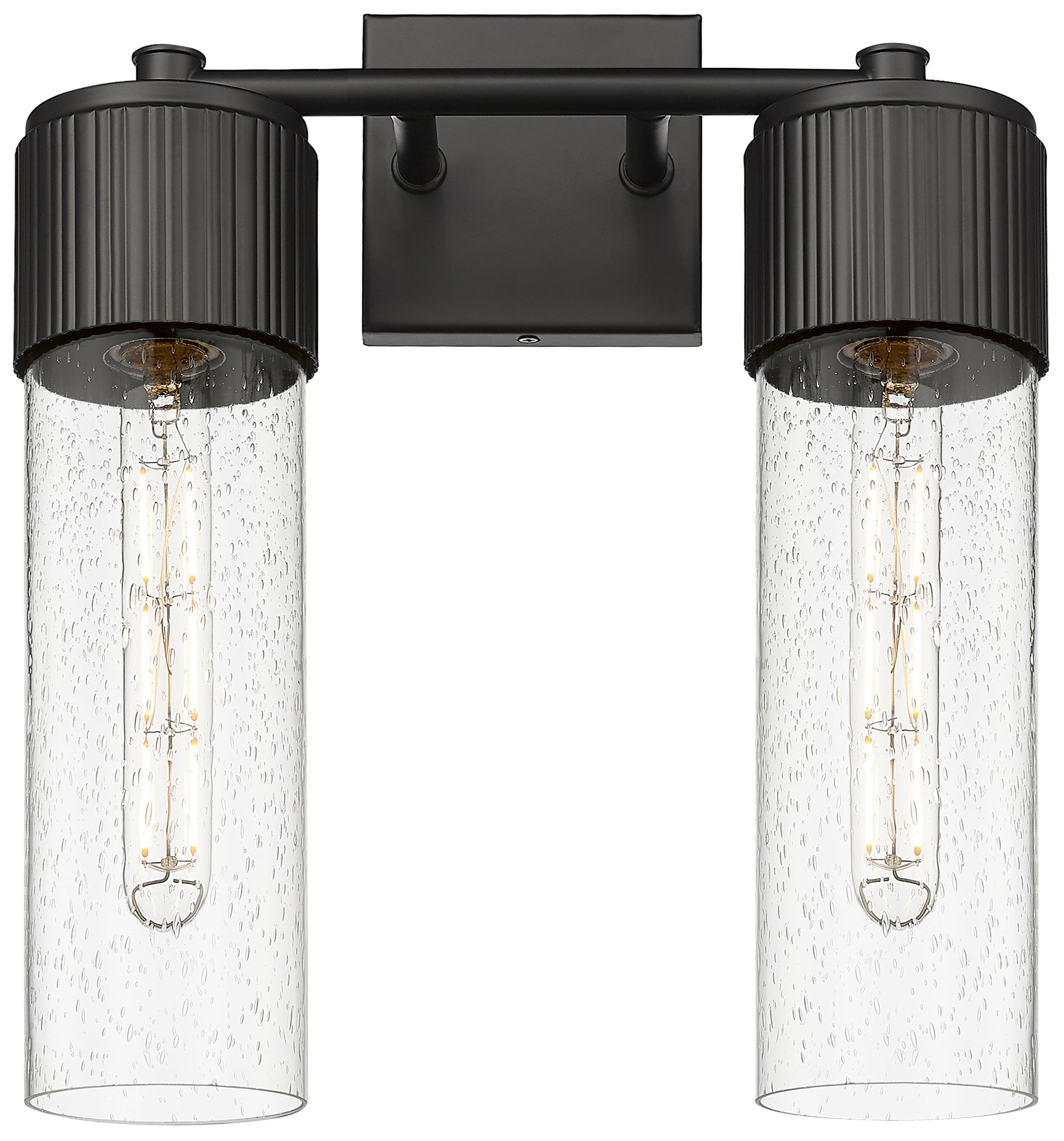 Bolivar 16" High 2 Light Matte Black Sconce With Seedy Glass Shade