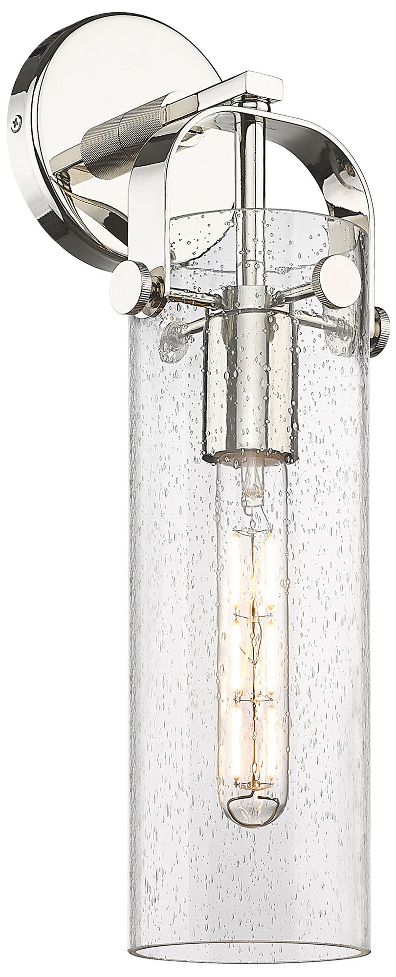 Pilaster 16.75" High Polished Nickel Sconce With Seedy Glass Shade