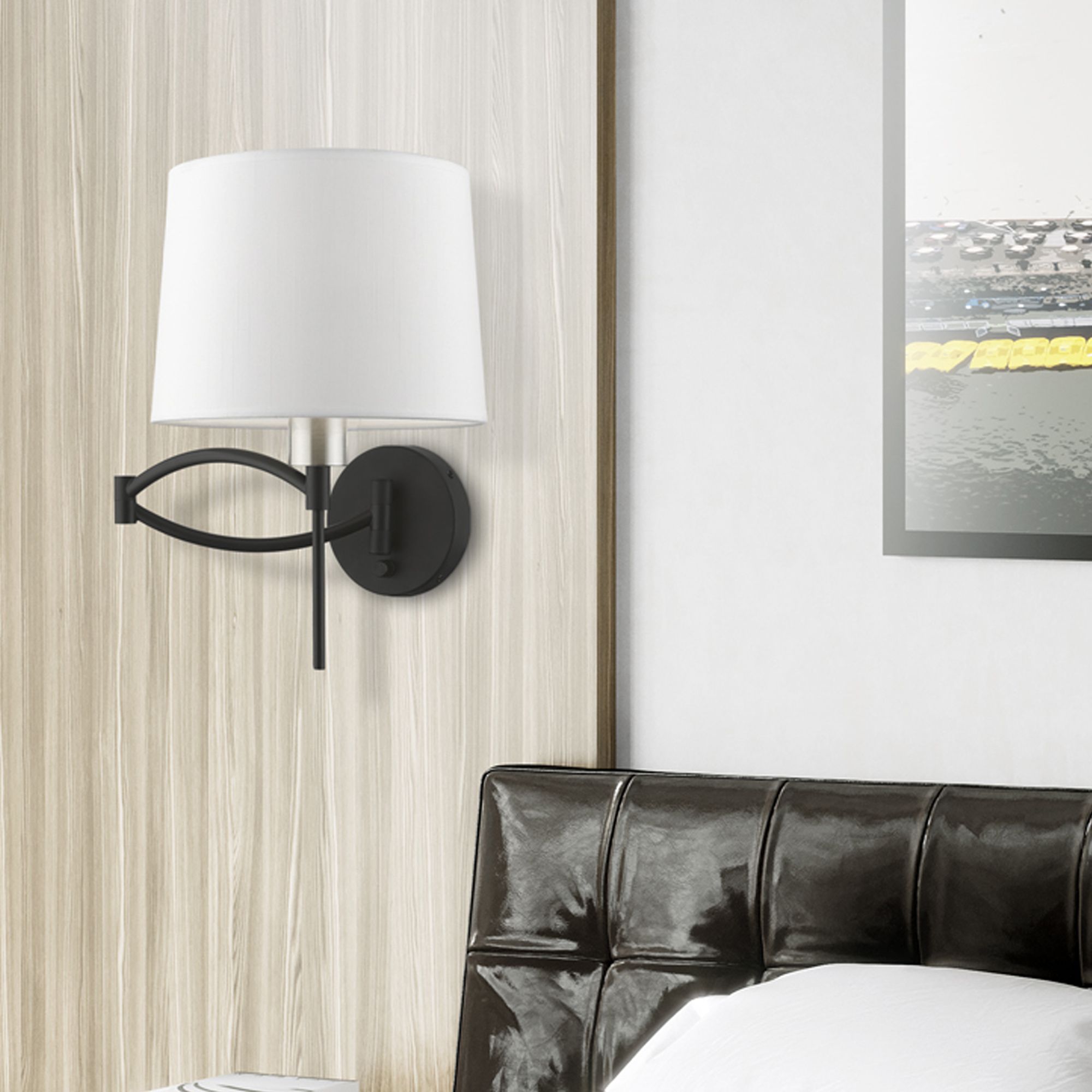 1 Light Black with Brushed Nickel Accent Swing Arm Plug-In Wall Lamp