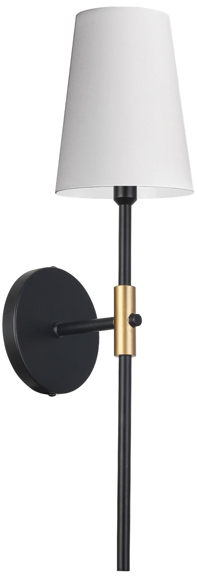 Cinthia 21.5"H Matte Black And Aged Brass Wall Sconce w/ White Shade