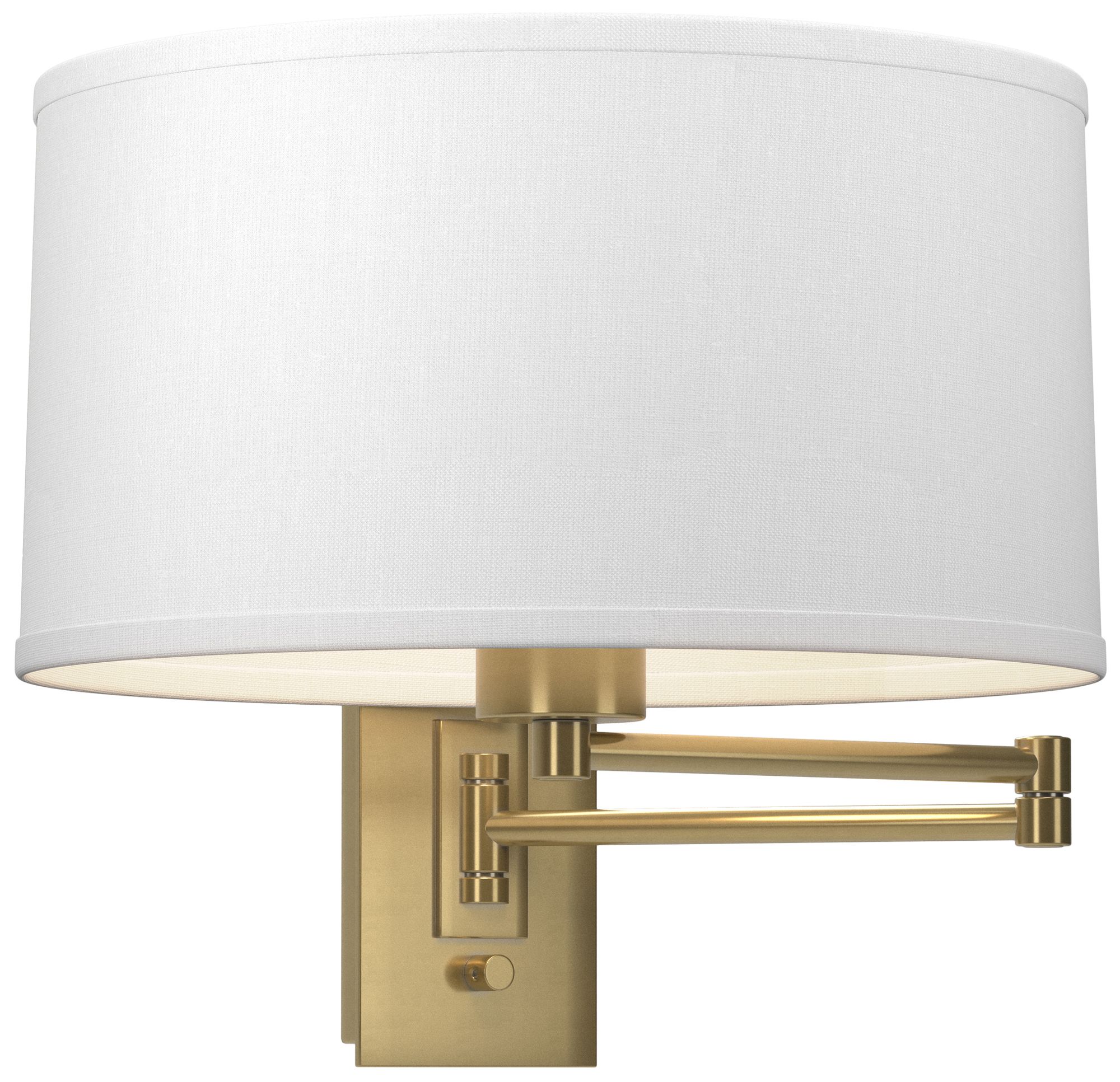 Simple 11" High Modern Brass Swing Arm Sconce With Natural Anna Shade