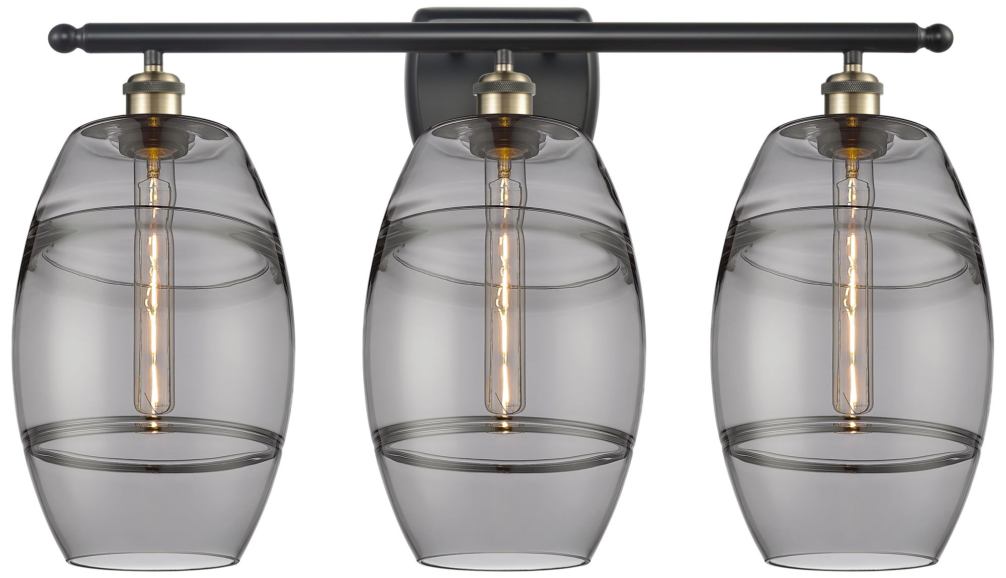 Ballston Vaz 28"W 3 Light Black Brass Bath Light w/ 8" Light Smok