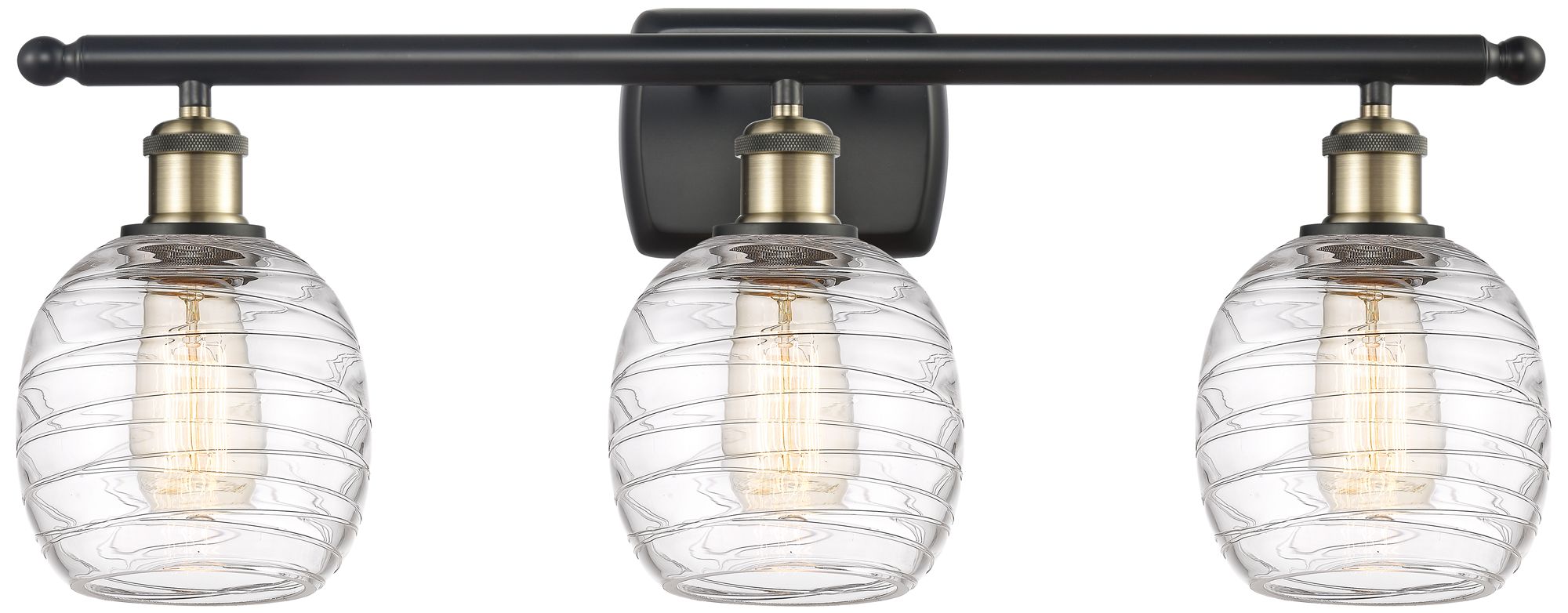 Belfast 3 Light 26" Bath Light - Black Antique Brass - Deco Swirl Shad