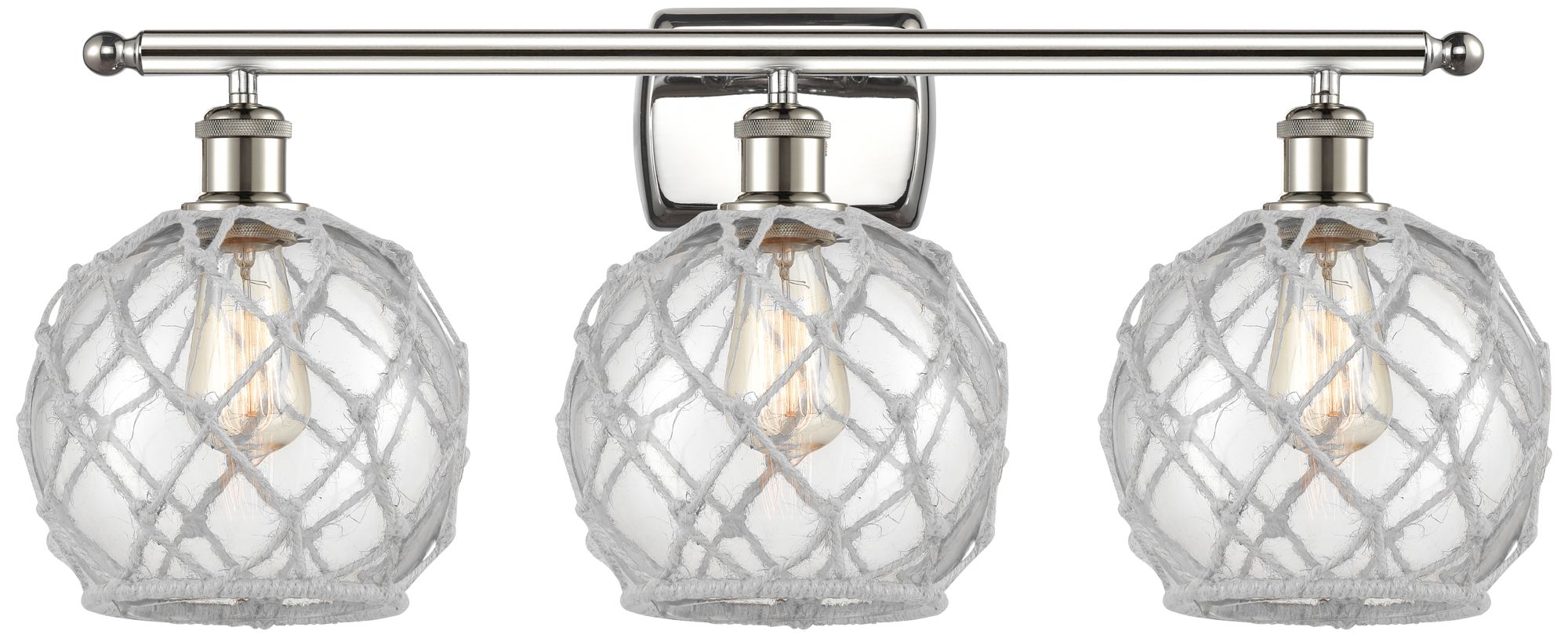 Farmhouse 26" 3-Light Polished Nickel Bath Light w/ Clear & White