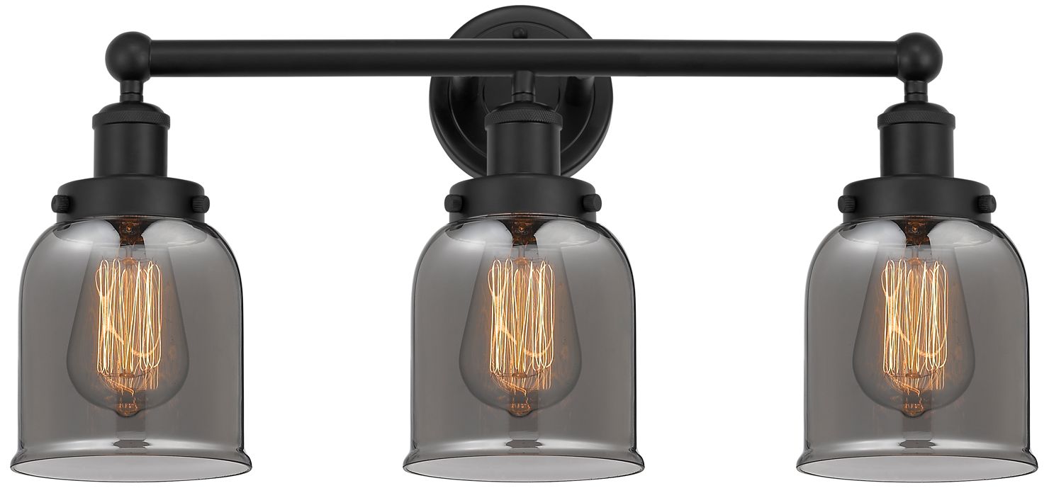 Bell 23" Wide Matte Black 3-Light Bath Light w/ Smoke Glass