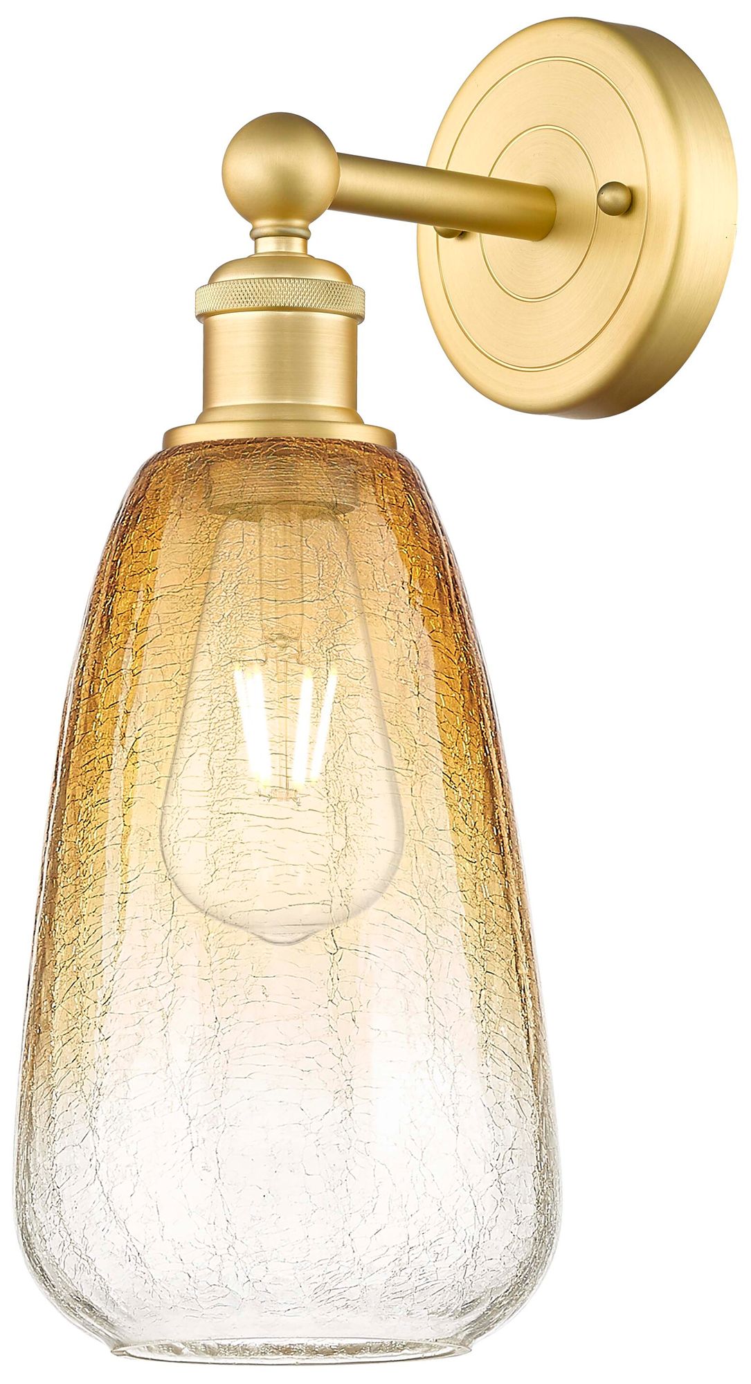 Edison Brookhaven Almond 15" High Satin Gold Sconce With Amber Shade