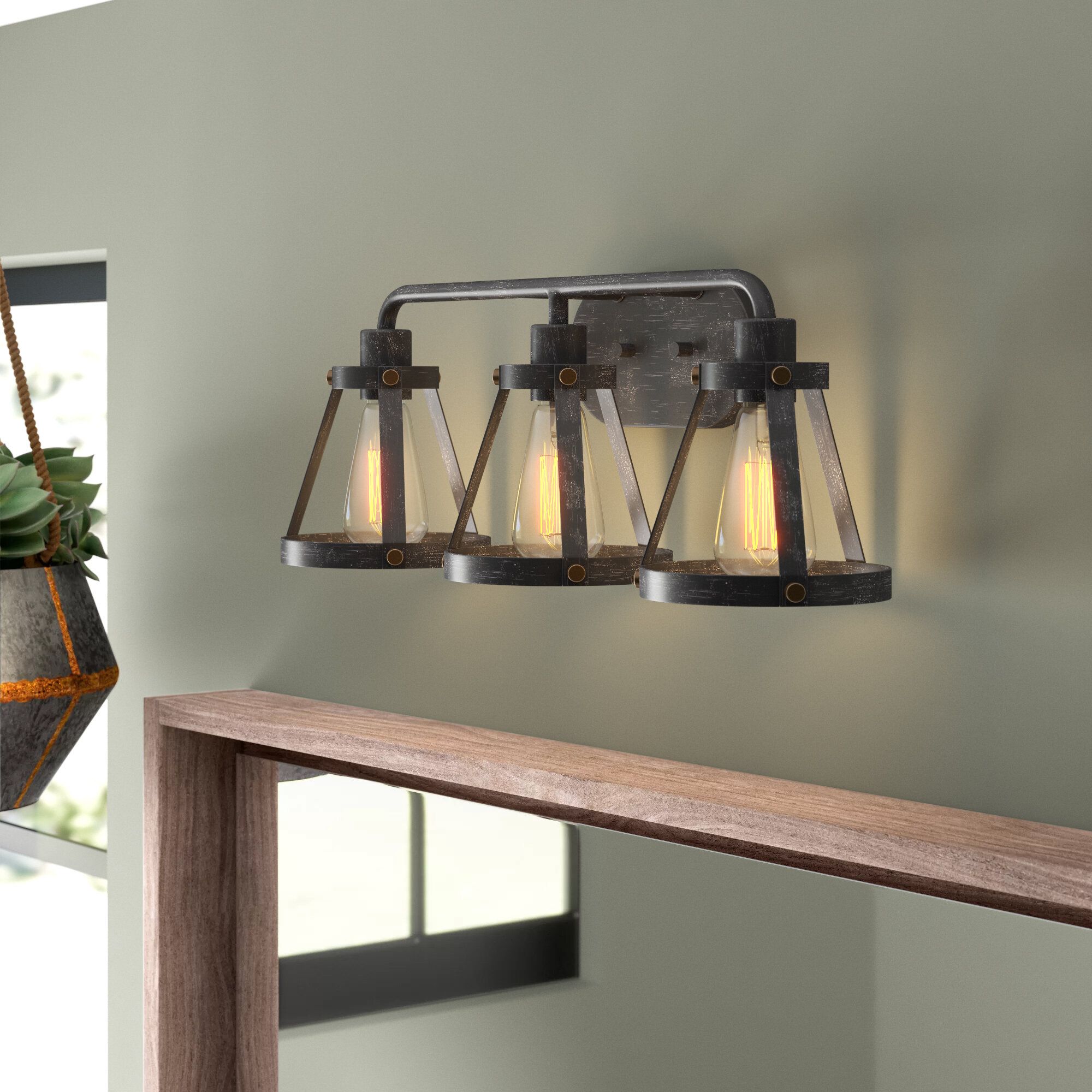 Hunter Erling Matte Black 3 Light Medium Bathroom Vanity Wall Light Fixture