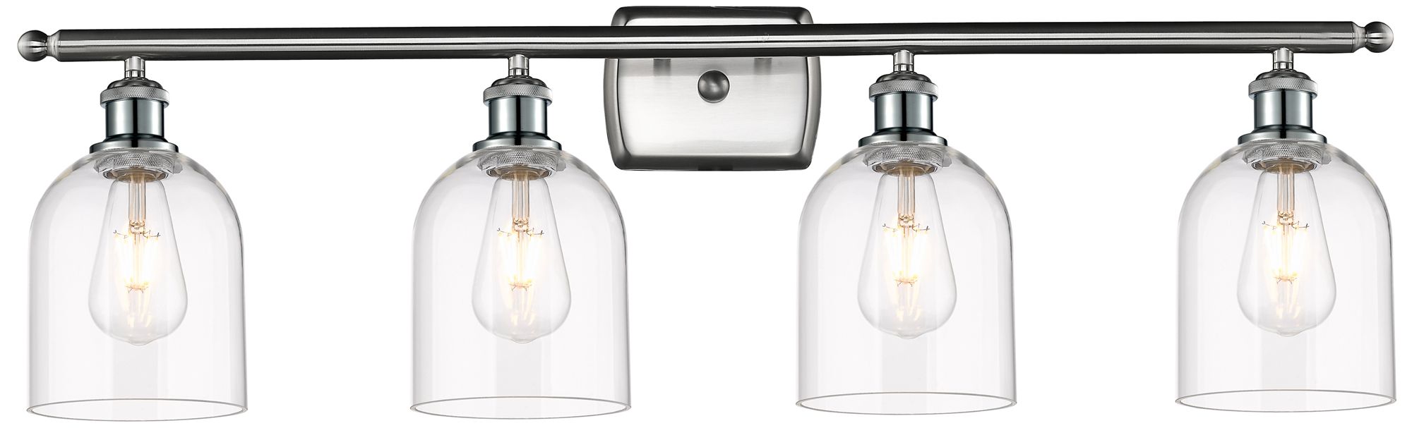 Bell 4 Light 44" LED Bath Light - Brushed Satin Nickel - Clear Shade
