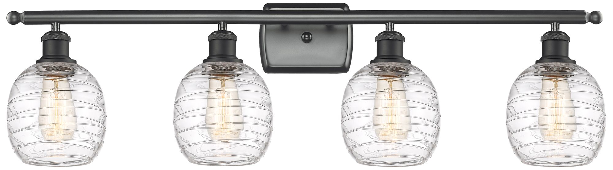 Belfast 4 Light 36" Bath Light - Matte Black - Deco Swirl Shade