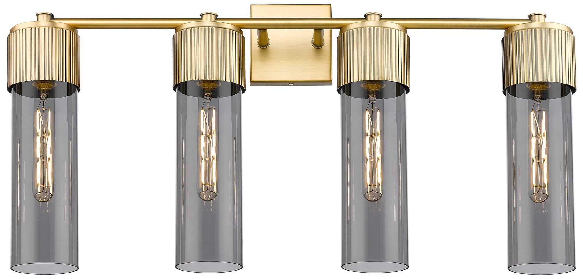 Bolivar 31" Wide 4 Light Brushed Brass Bath Light With Plated Smoke Sh