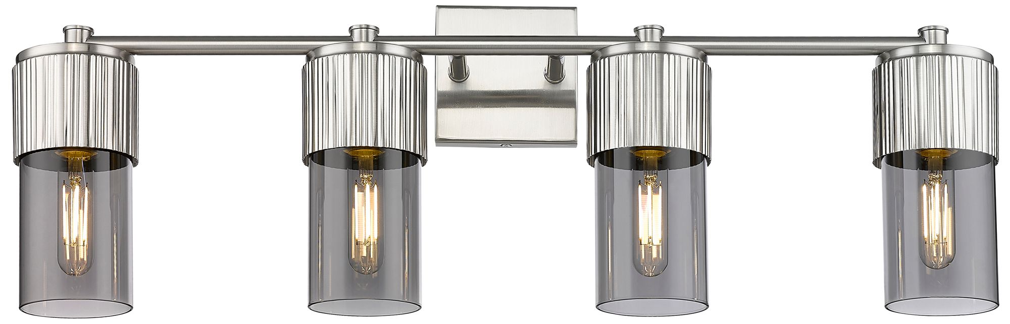 Bolivar 31" Wide 4 Light Satin Nickel Bath Light With Plated Smoke Sha