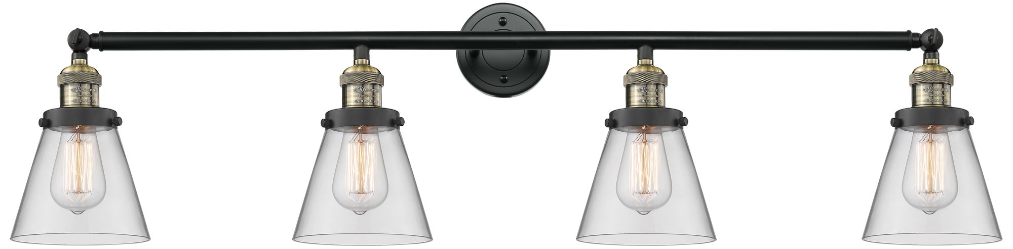 Cone 4 Light 42" Bath Light - Black Antique Brass - Clear Shade