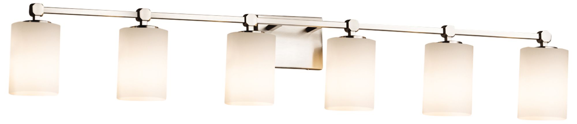 Fusion Aero 56"W Nickel 6-Light Bath Light w/ Ribbon Glass