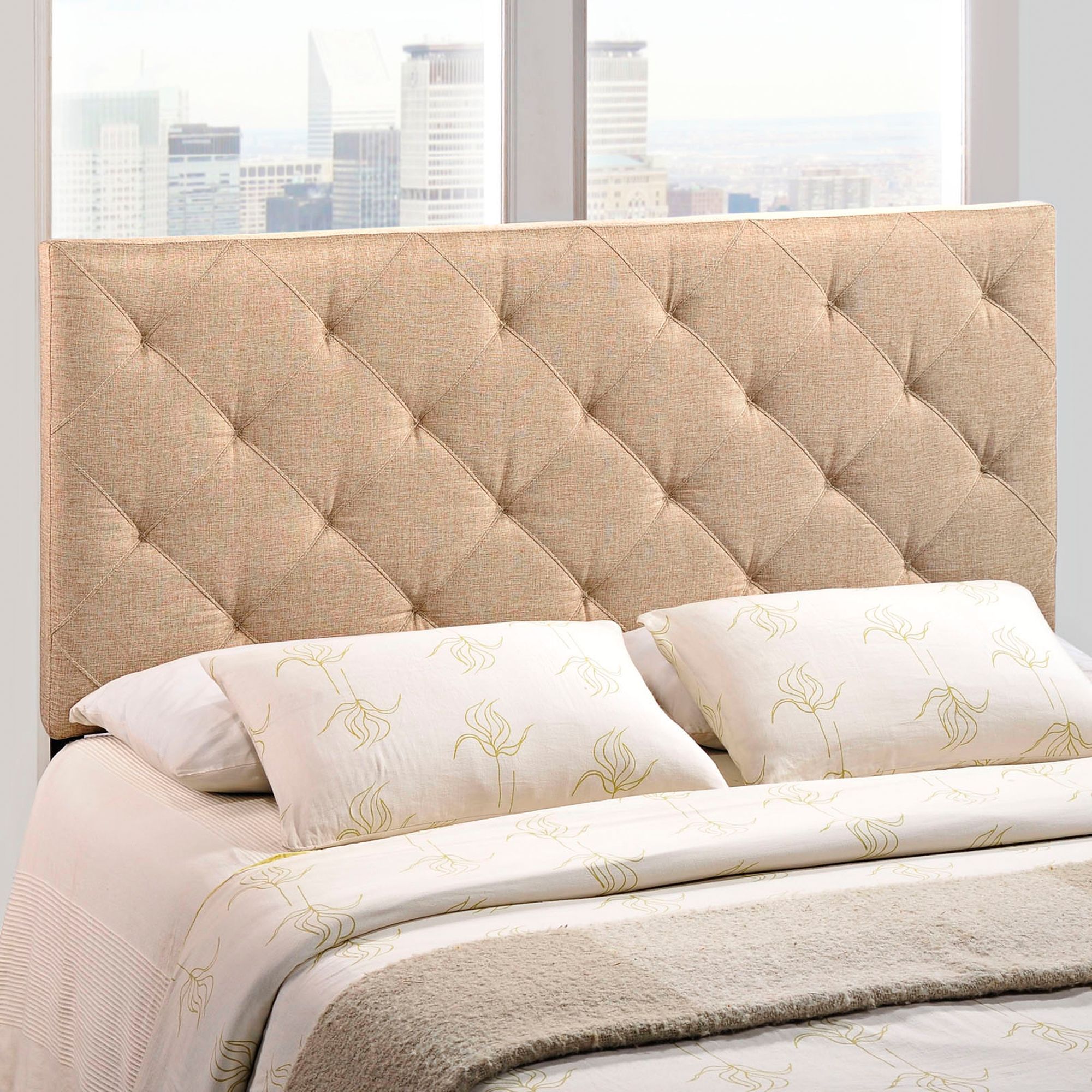 Theodore Beige Diamond-Tufted Full Fabric Headboard