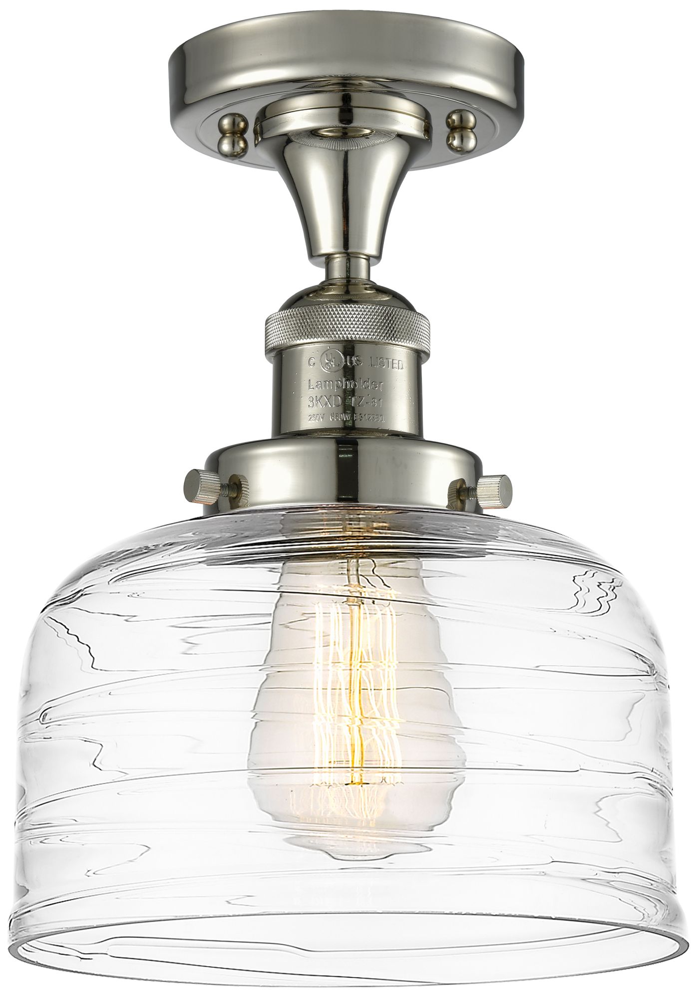 Bell 8" LED Semi-Flush Mount - Polished Nickel - Clear Deco Swirl Shad