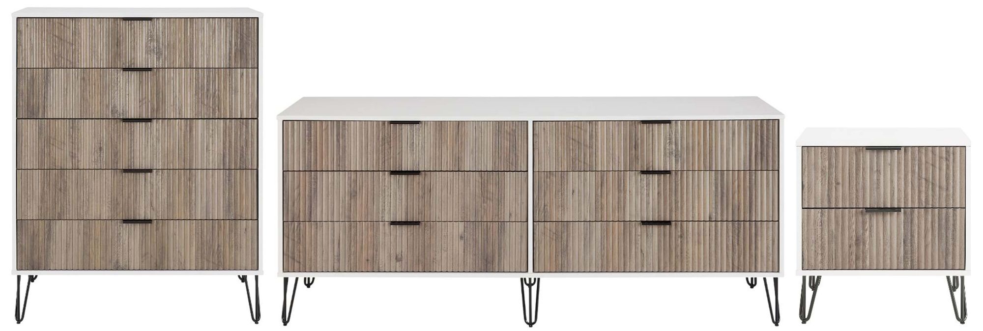 3-Piece DUMBO 5-Drawer Tall Dresser, 6-Drawer Low Dresser, & Nightstand
