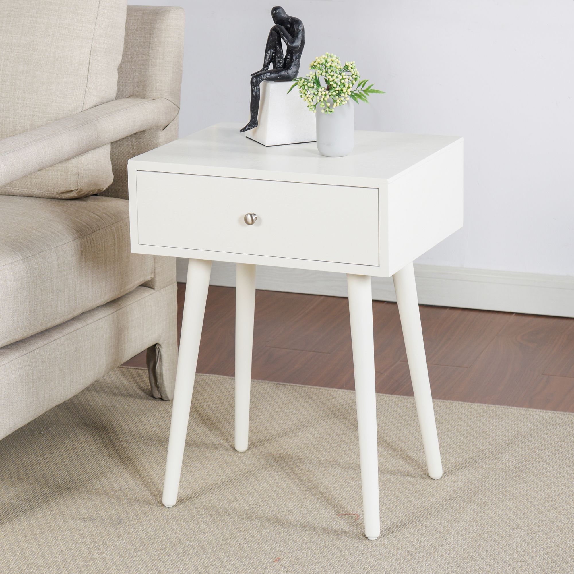 Arthur 23.5" High Farmhouse White Side Table with One Drawer