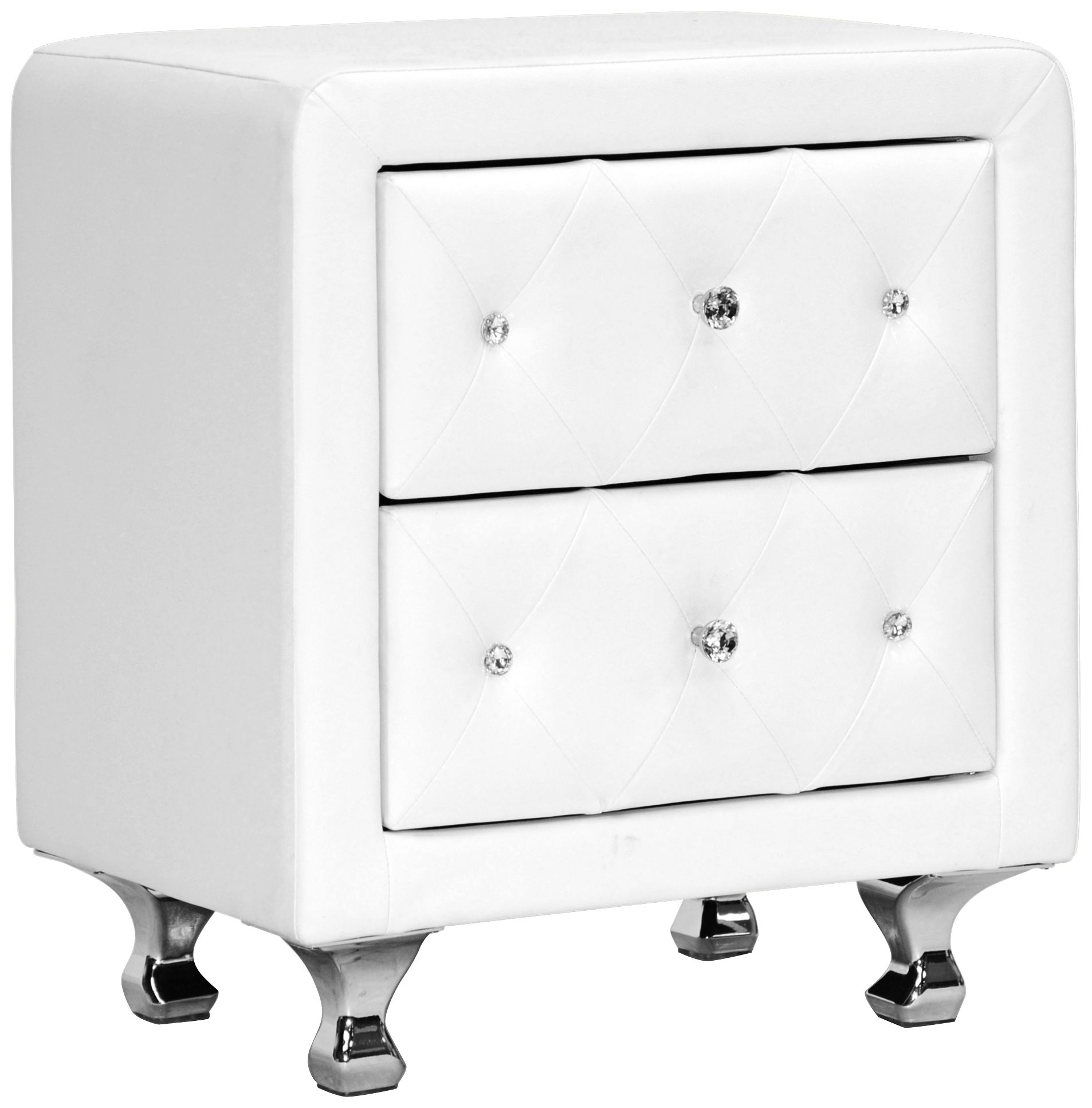Baxton Studio Stella Crystal Tufted White Upholstered Modern Nightstand