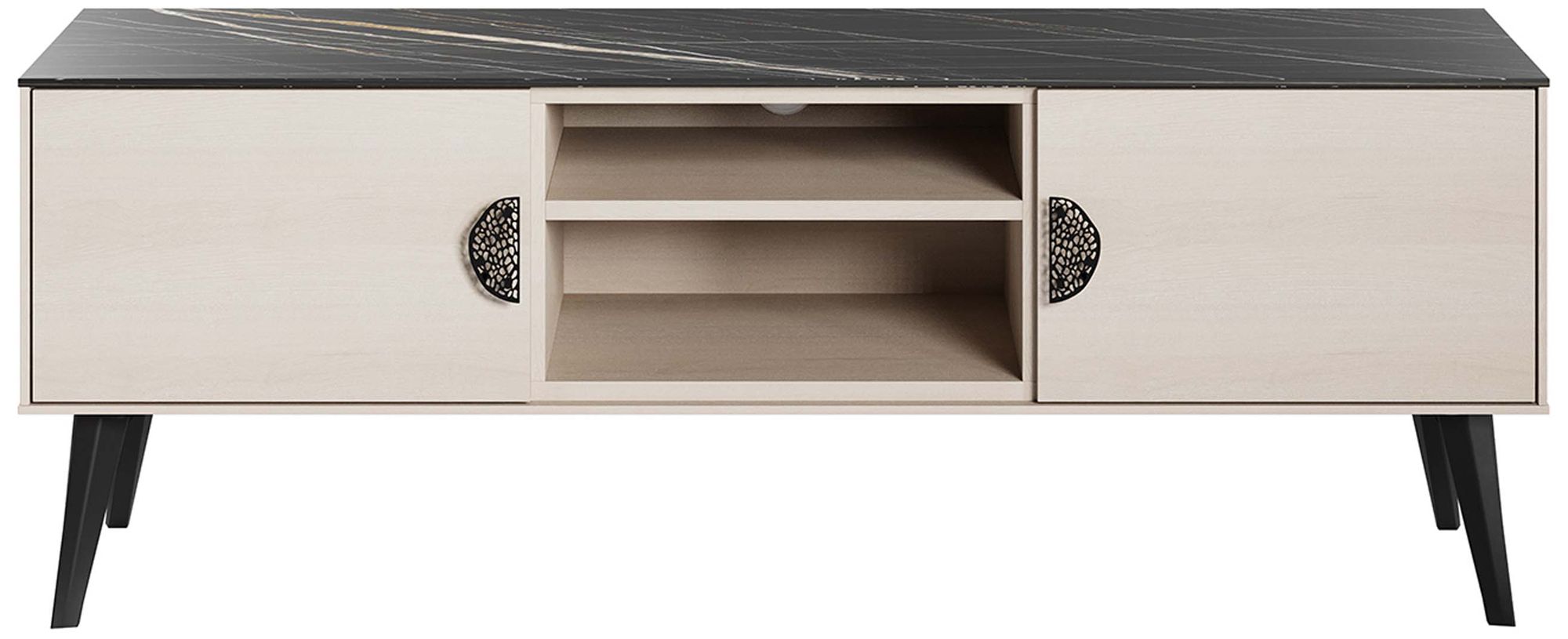 Haley 55.10" Mid-Century Modern TV Stand in White and Black Marble