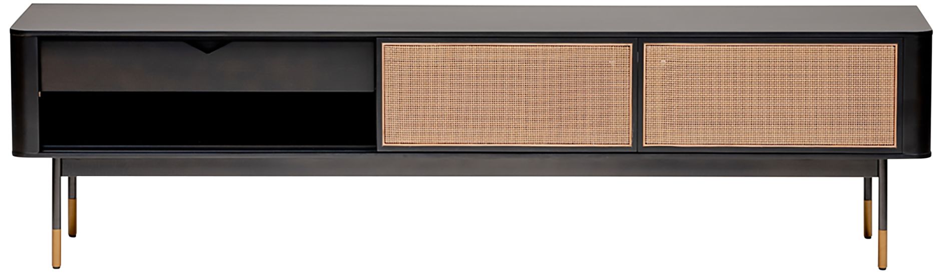 Holland 34" Wide Brushed Black Rattan 2-Door Media Chest