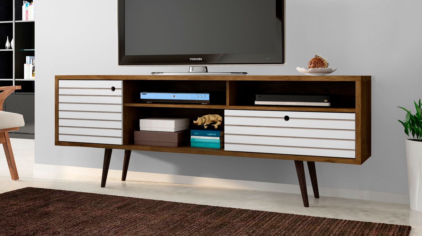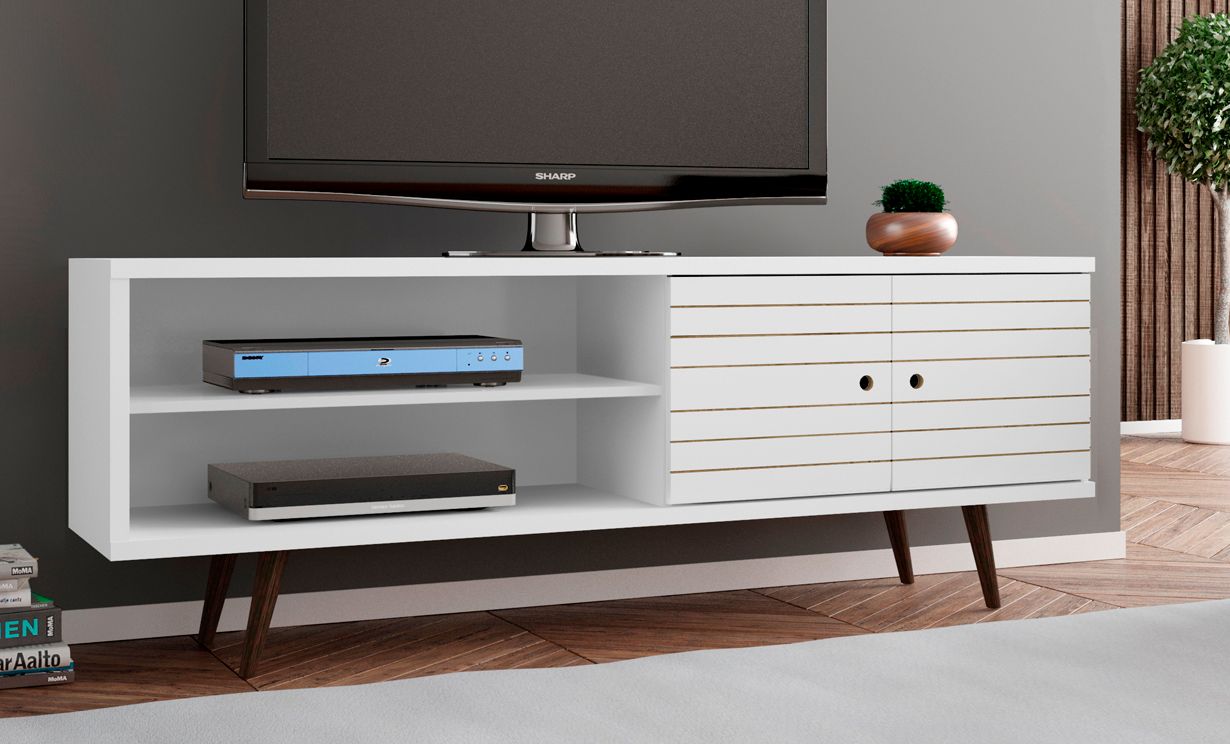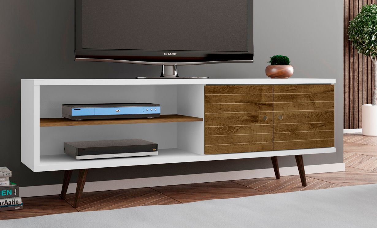 Liberty 63" Wide White and Wood 2-Door Modern TV Stand