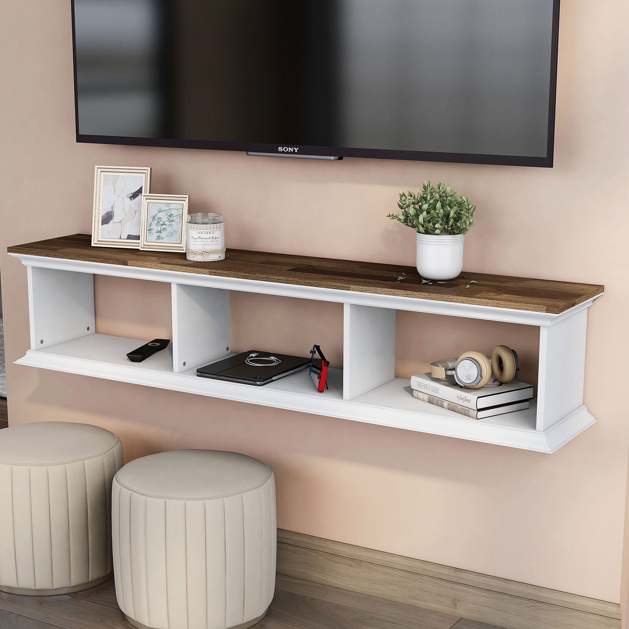 Pauly 63" Wide Hickory White Wood 3-Shelf Floating TV Stand