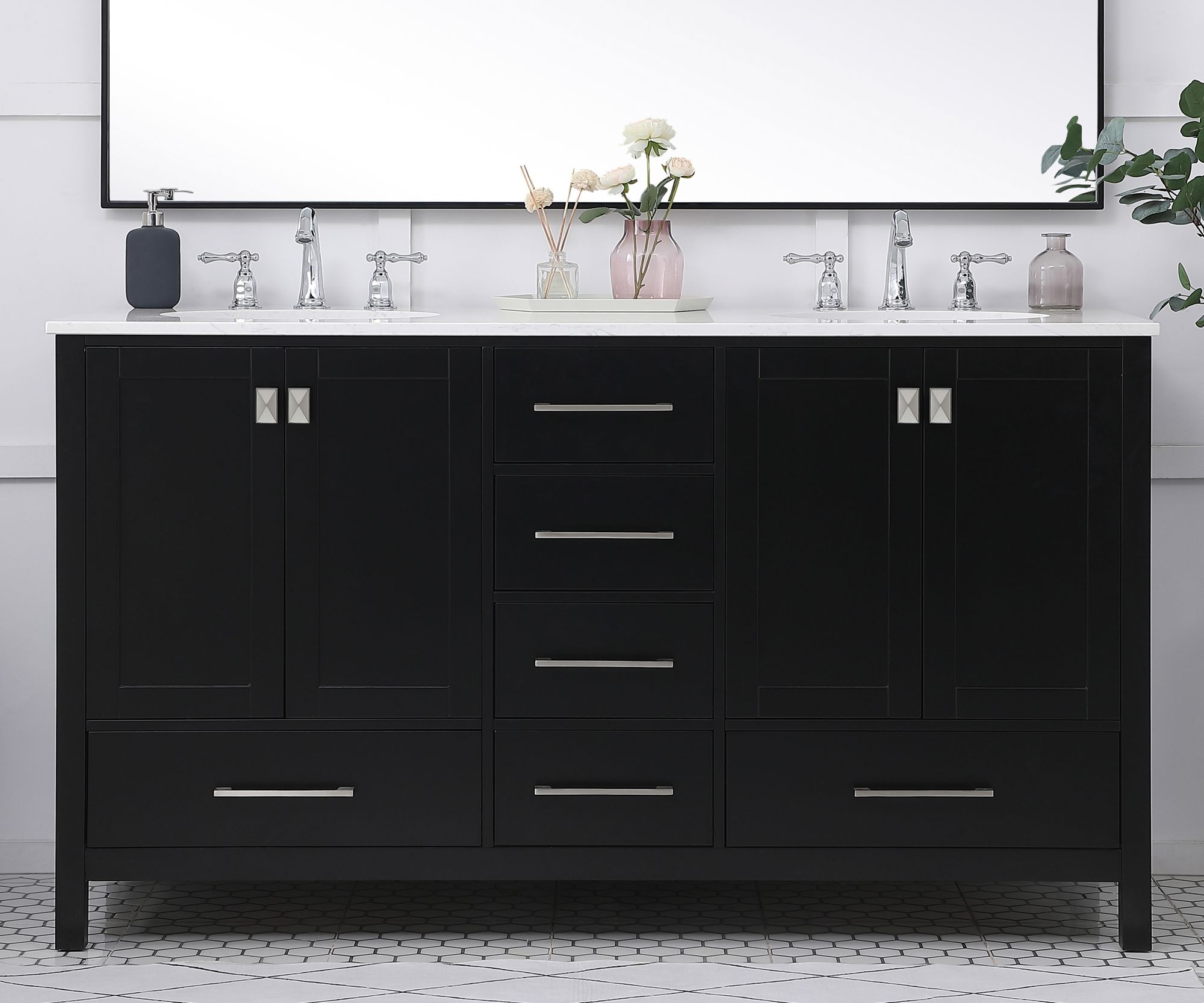 Theo 60" Wide Black 2-Drawer Double Sink Bathroom Vanity