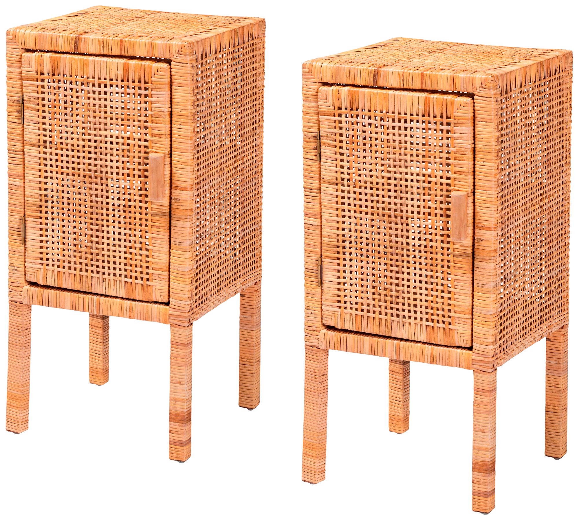 Vivan 13 3/4" Wide Natural Brown Wood 1-Door Nightstands Set of 2
