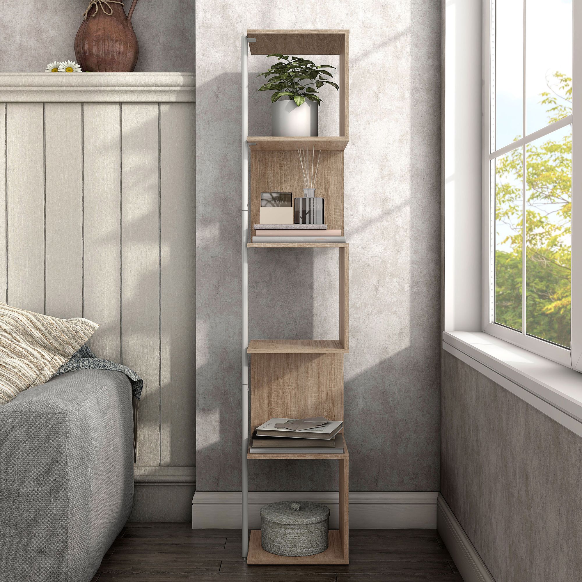 Essex 15" Wide White and Zebra Wood 5-Shelf Bookcase
