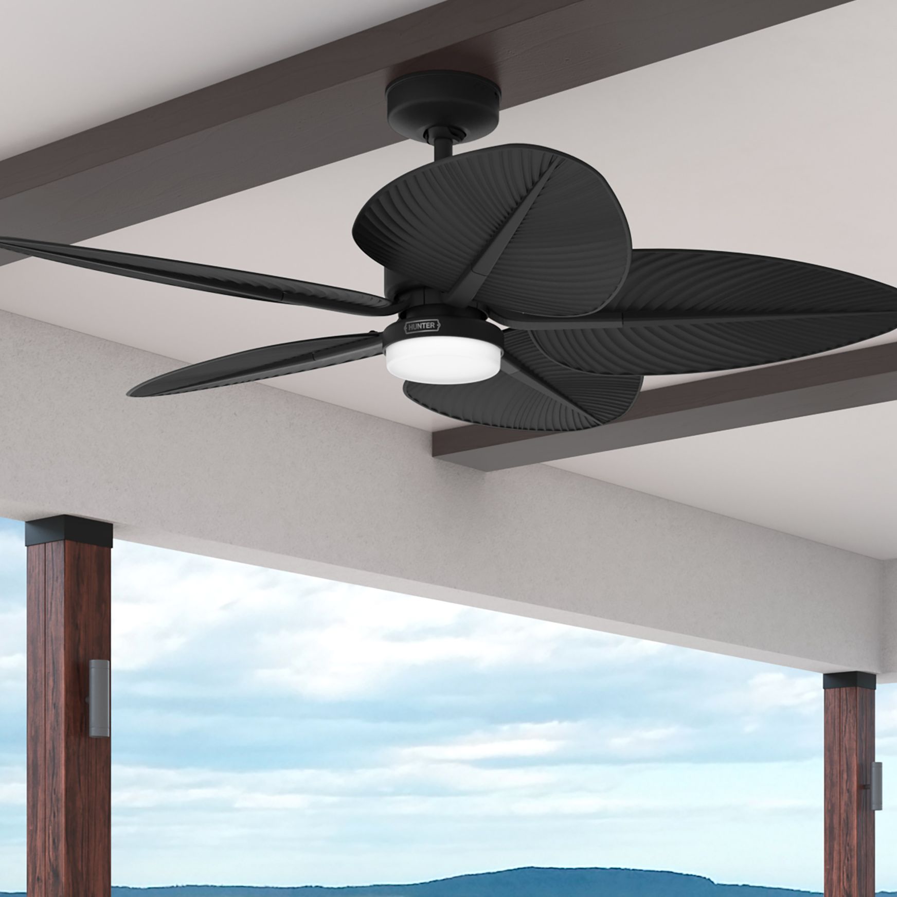 Hunter 52 inch Tropic View Matte Black Damp Rated Ceiling Fan