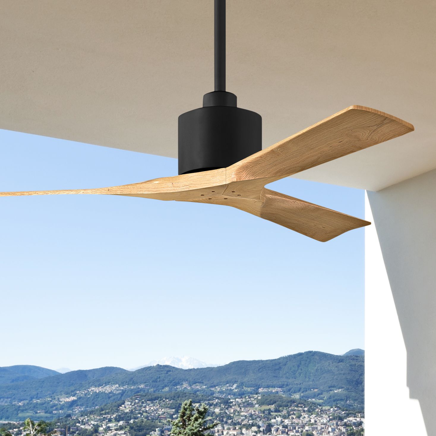 52" Matthews Nan Black and Maple Outdoor Ceiling Fan with Remote