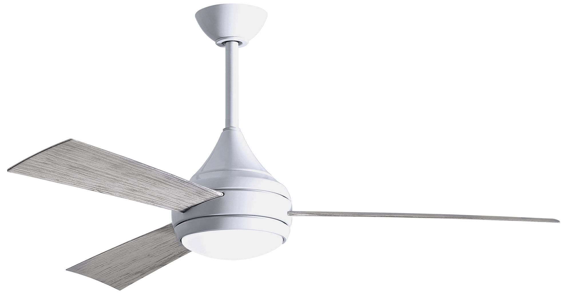 48" Modern Fan Velo DC Gloss White Graywash Damp Rated Fan with Remote