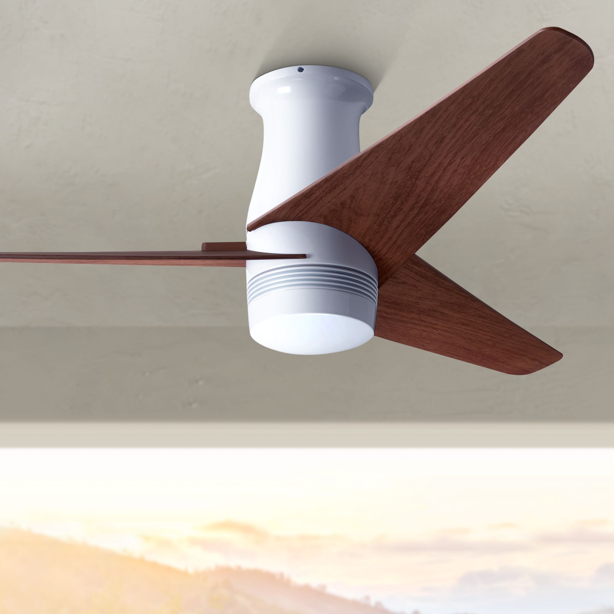 48" Modern Fan Velo DC Gloss White Mahogany Hugger Fan with Remote