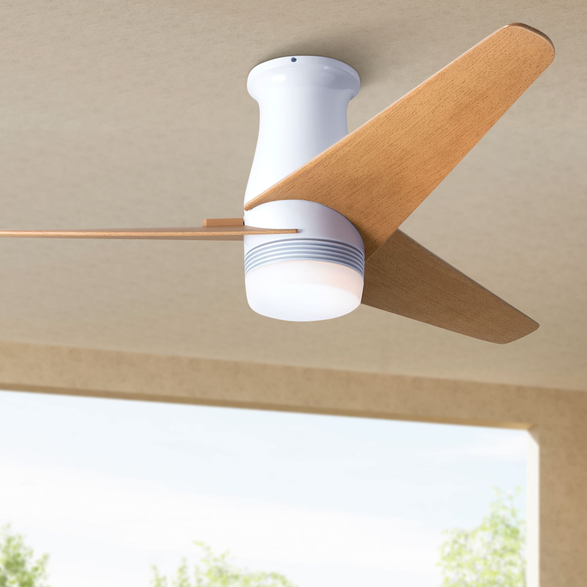 48" Modern Fan Velo DC White Maple Hugger Fan with Wall Control