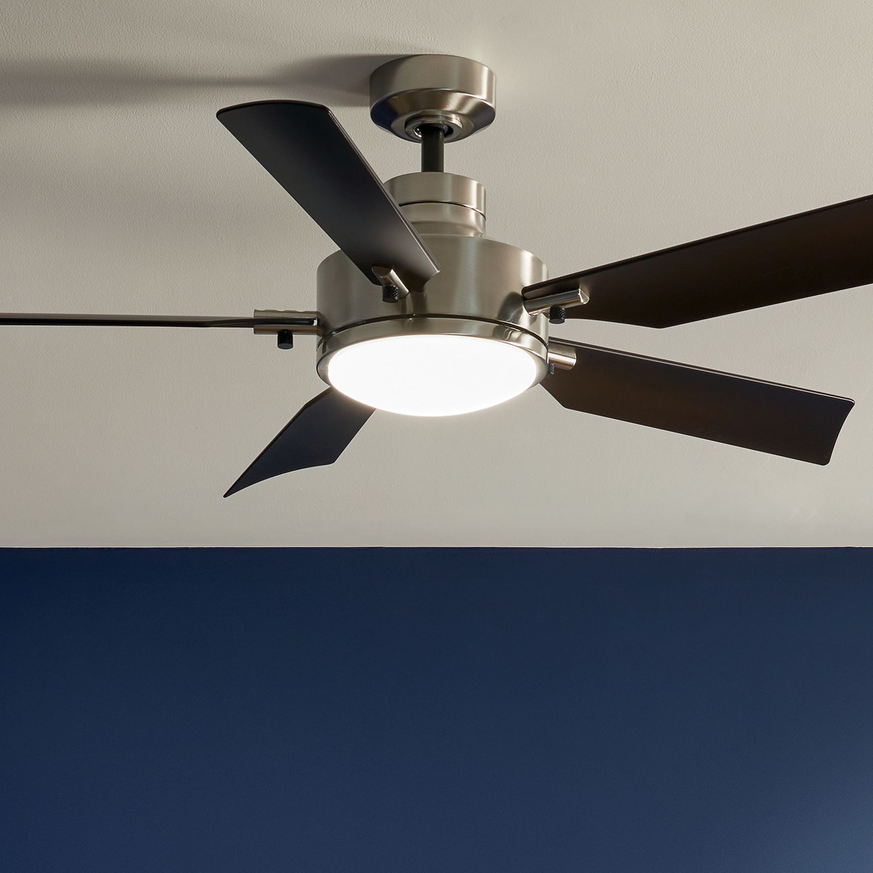 56" Kichler Guardian LED Silver-Black 5-Blade Ceiling Fan