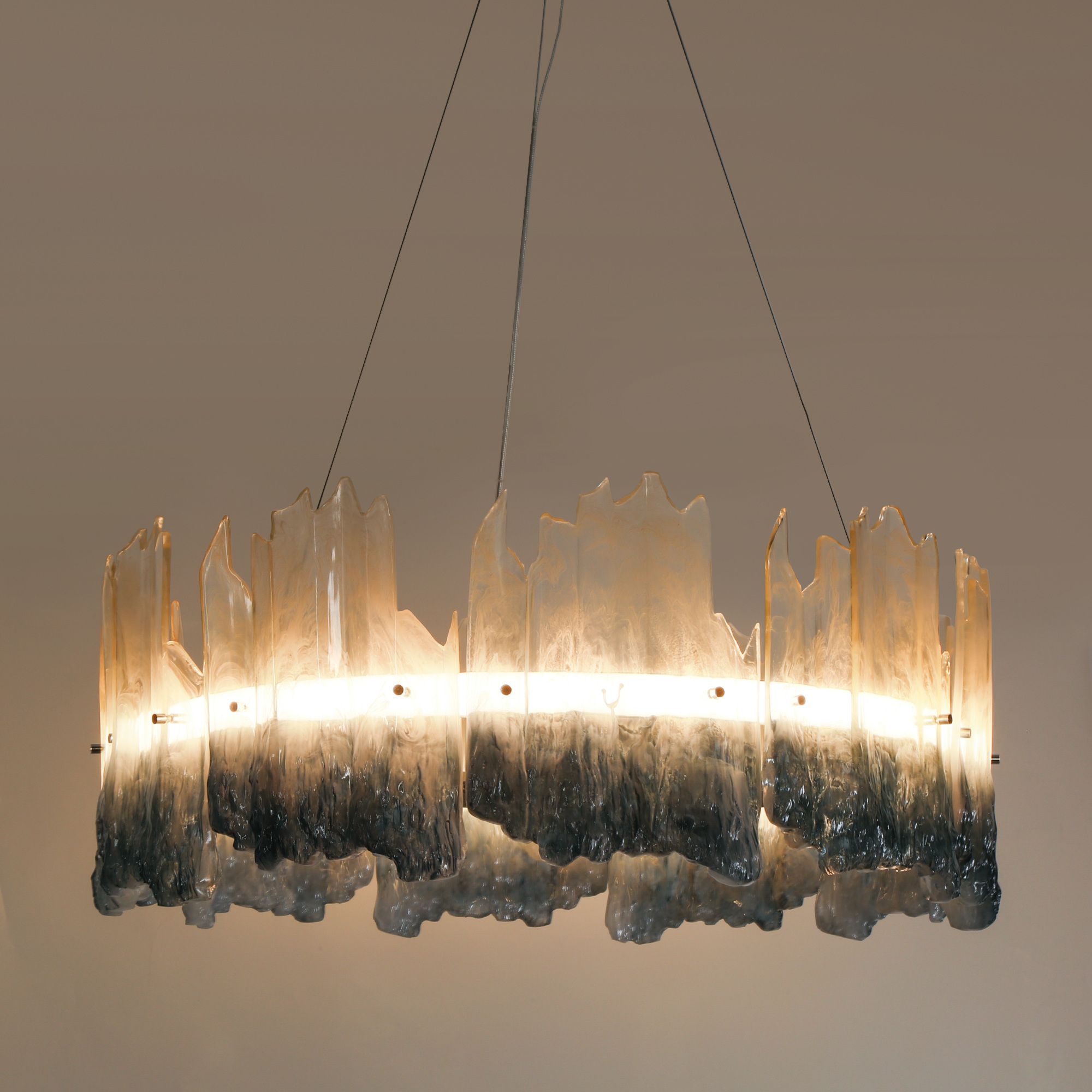 Consider the materials used in the construction of the blue chandelier, such as glass, crystal, or metal, to ensure durability and longevity while adding visual interest to the fixture.
