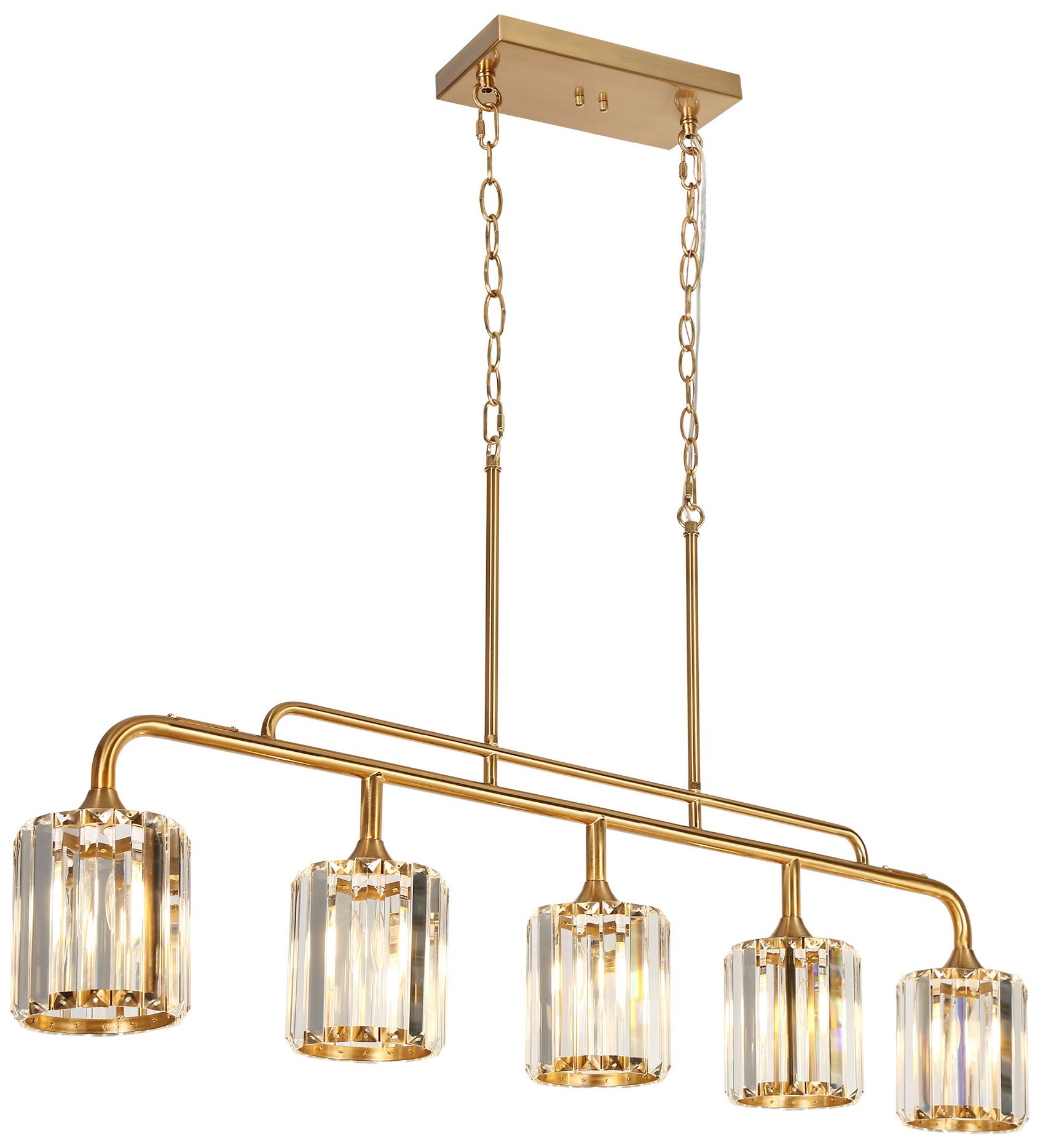 Evangeline 44 1/2"W Plated Brass 5-Light Island Chandelier