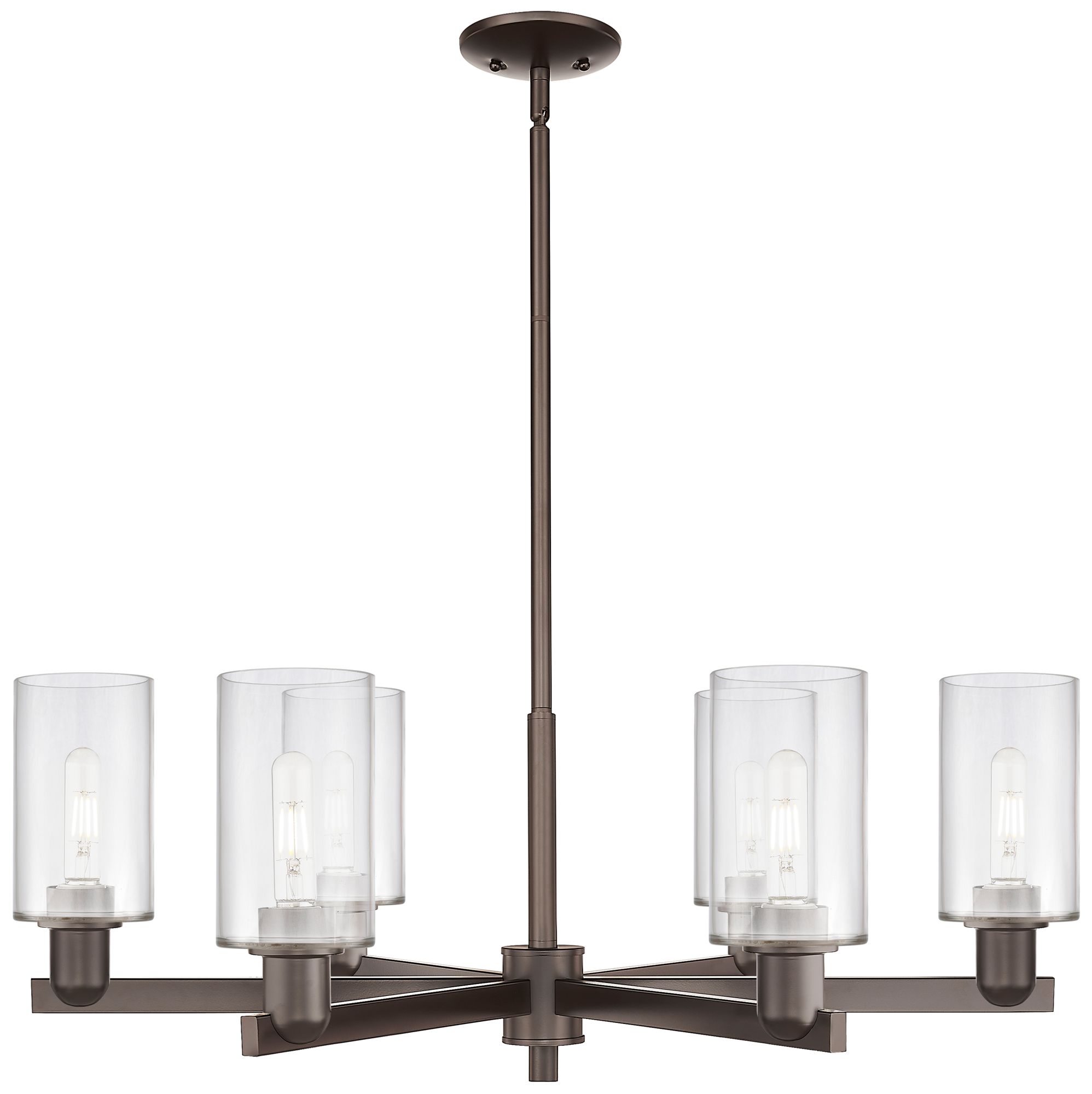 Arcadia Clymer 34"W 6-Lt Oiled Bronze Stem Chandelier w/ Clear Shade