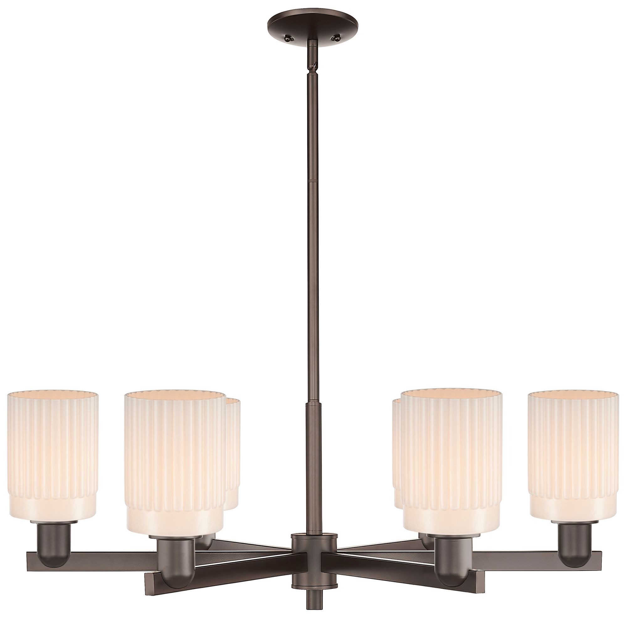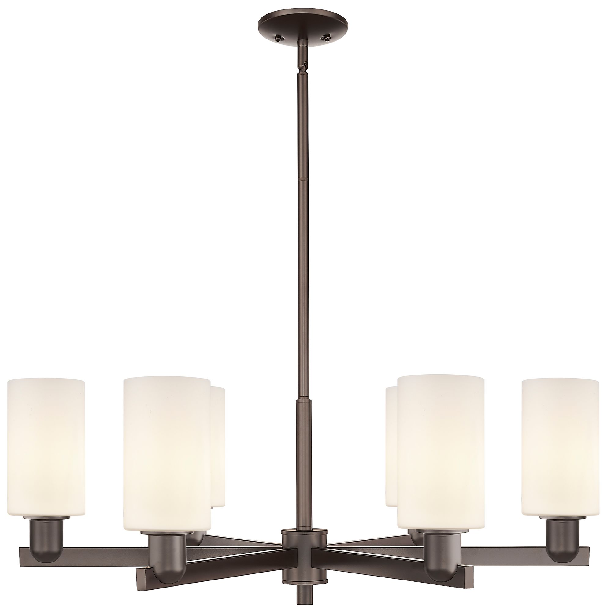 Arcadia Clymer 34"W 6-Lt Oiled Bronze Stem Chandelier w/ White Shade