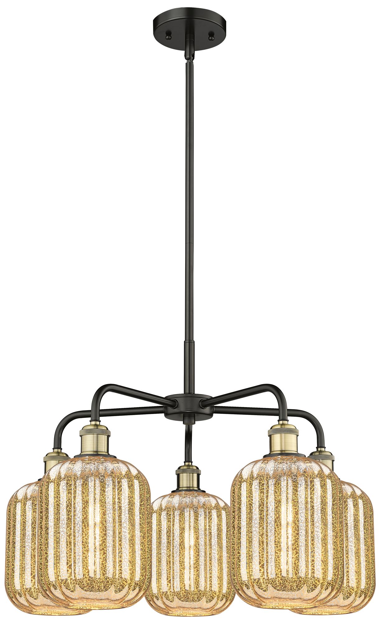 Ballston Preston 25"W 5-Lt Black Brass Stem Chandelier w/ Mercury Jar Shade