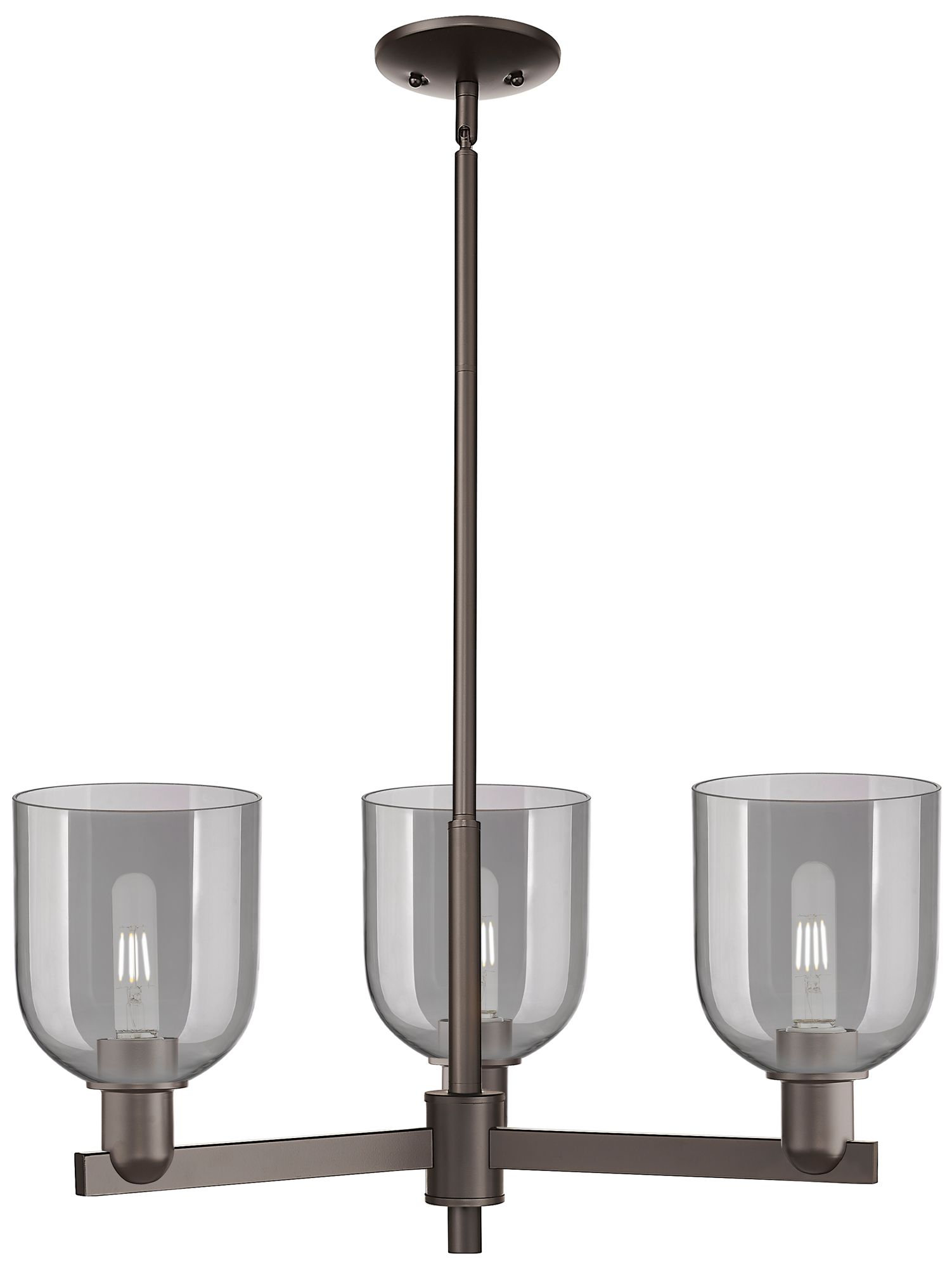 Arcadia Bella 27"W 3-Lt Oiled Bronze Stem Chandelier w/ Light Smoke Shade
