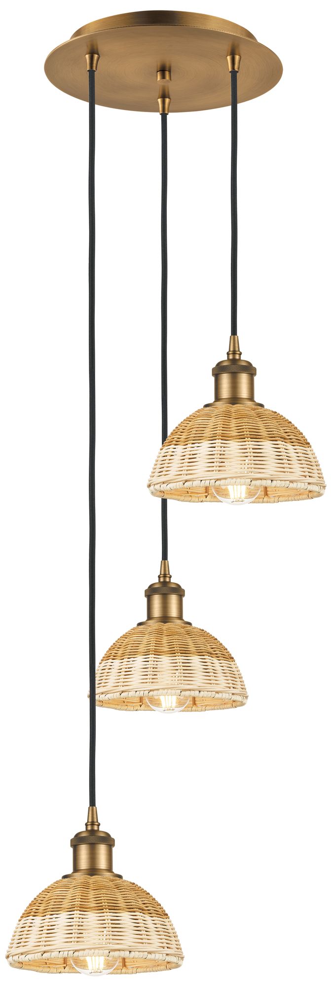 Ballston Bristol Natural II 14"W 3 Light Brushed Brass Cord Pendant
