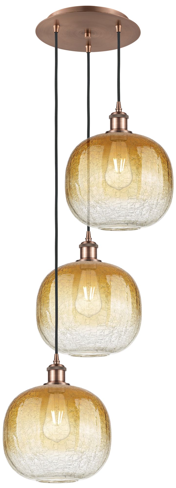 Ballston Brookhaven Sphere 17"W 3-Lt Copper Cord Pendant w/ Amber Shade