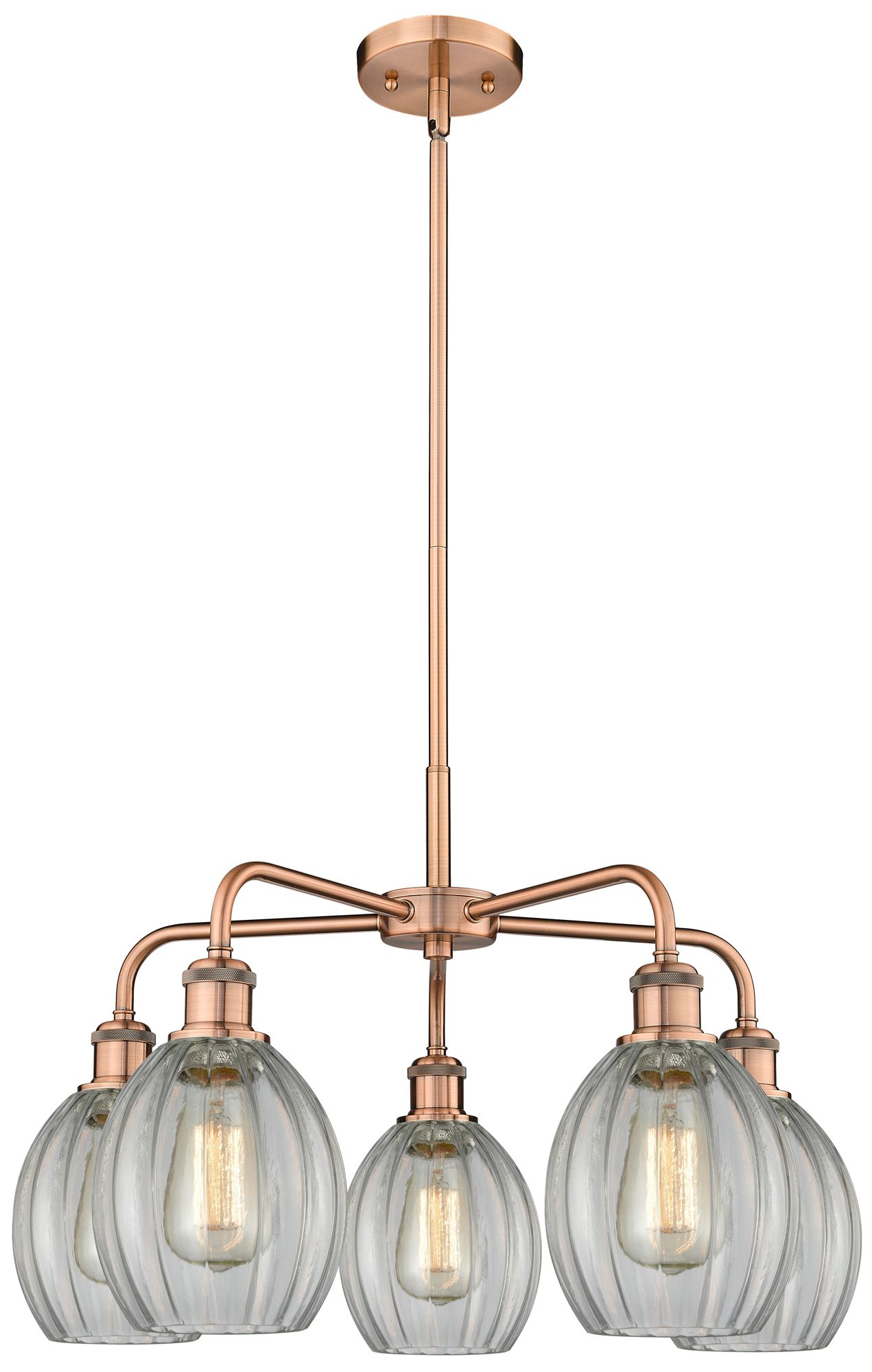 Eaton 23.5"W 5 Light Antique Copper Stem Hung Chandelier With Clear Sh