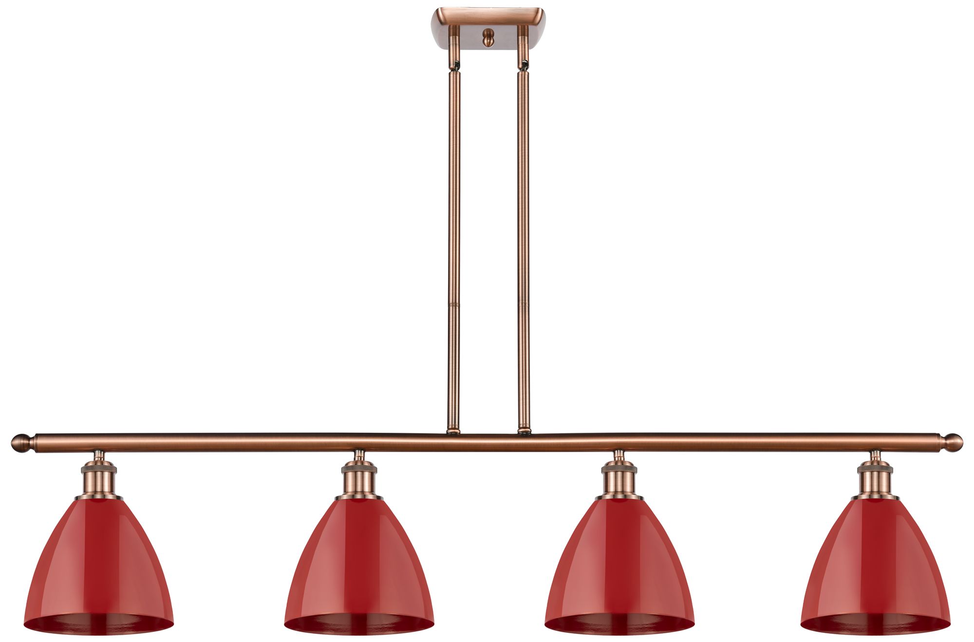 Plymouth Dome 48" Wide 4 Light Copper Island Light w/ Red Shade