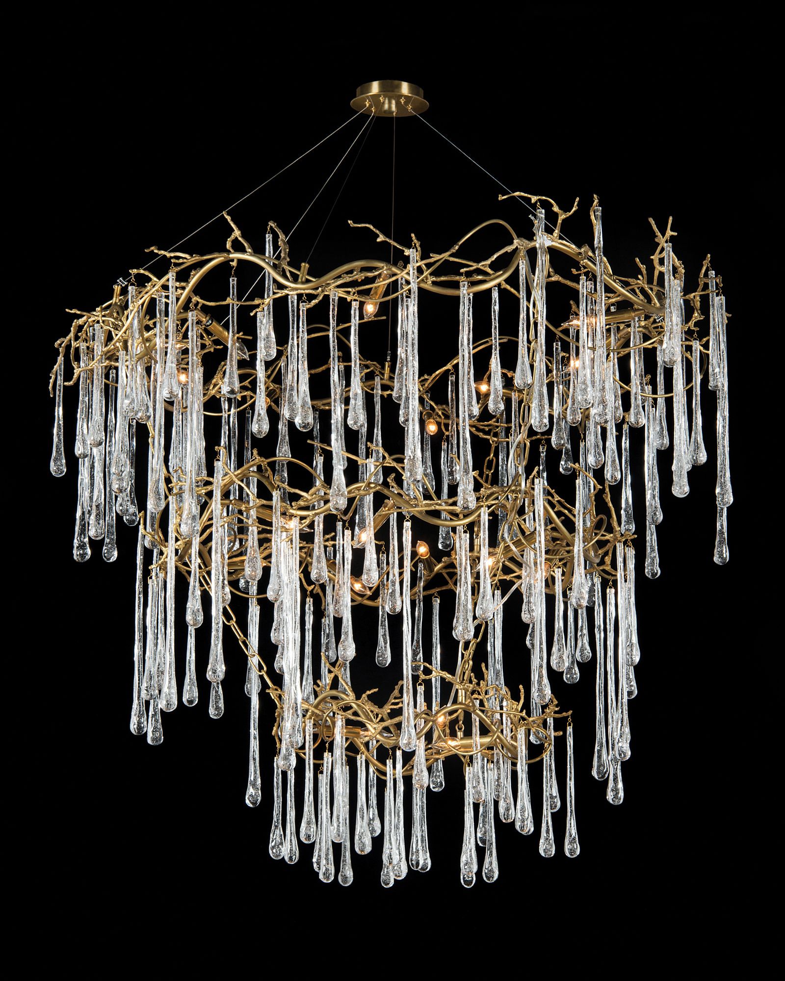 Shiro Noda 77" Wide Brass Crystal Glass Island Chandelier